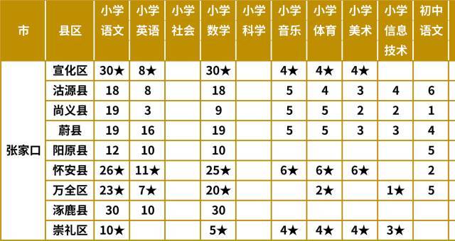 (注:小学特设岗位需求中带“★”号者,根据设岗县岗位学历要求只招收本科及以上学历)