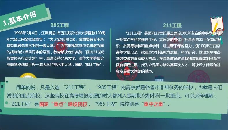 1998年5月4日,时任国家主席江泽民在庆祝北京大学建校100周年大会上代表中国共产党和中华人民共和国中央人民政府向全社会宣告:“为了实现现代化,我国要有若干所具有世界先进水平的一流大学。”1999年,国务院批转教育部《面向21世纪教育振兴行动计划》,“985工程”正式启动建设。