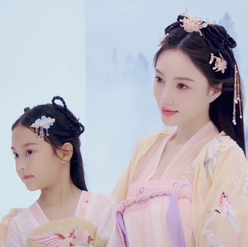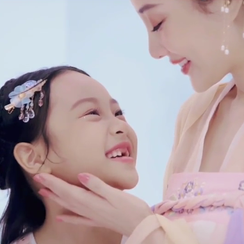 除此之外甜馨李小璐还cos嫦娥造型,甜馨梳着中分发型,李小璐也穿着嫦娥服,甜馨李小璐对视甜笑,小甜馨换了门牙笑起来特别可爱。