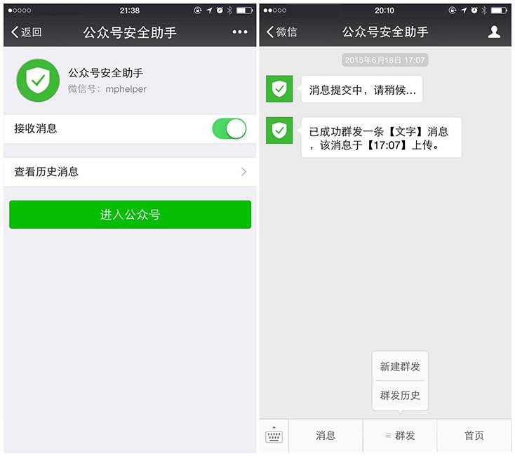 微信公众平台手机版公测,你可以在“公众号安全助手”(mphelper)上管理公众号。