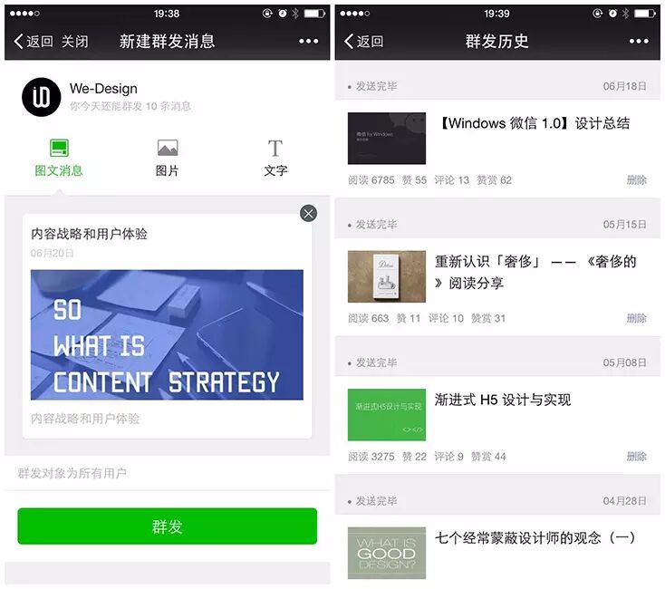 2. 群发图文、图片和文字。