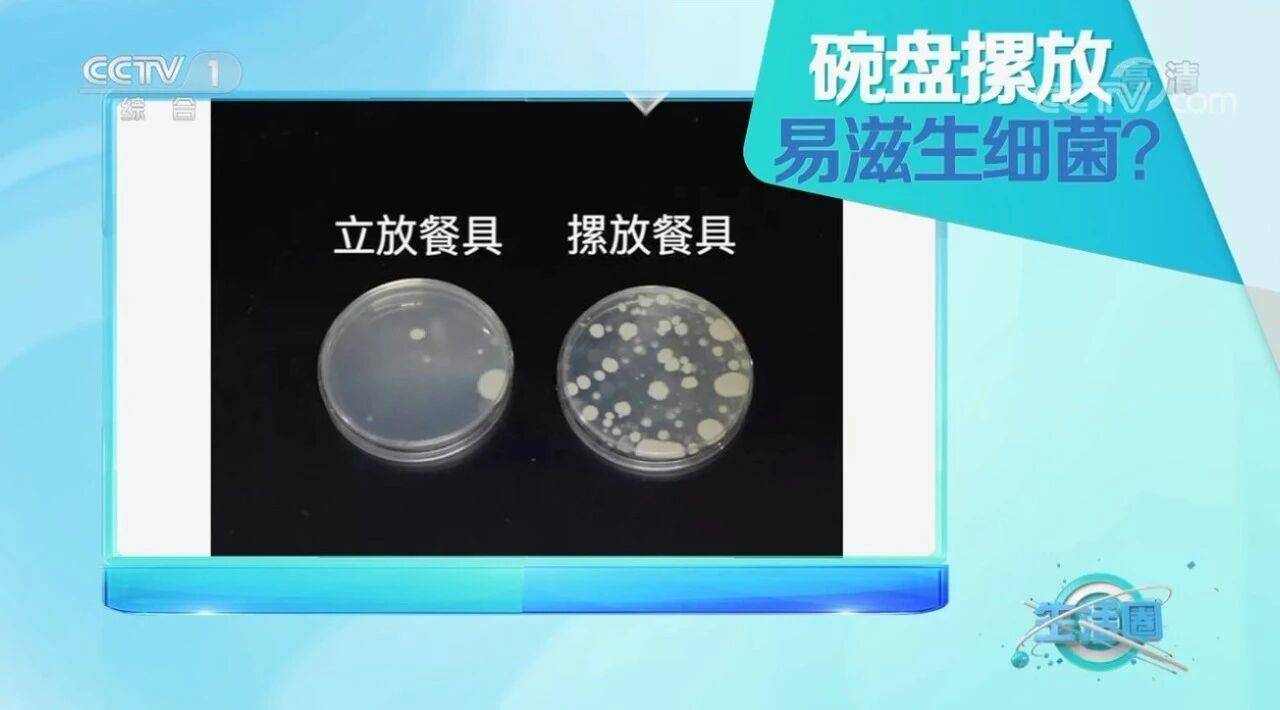 一组试验曾显示,摞着放的餐具细菌数量约为立着放的餐具的70倍。
