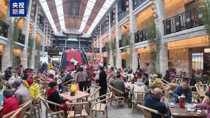 在一家由成都漆器厂改造更新而成的茶馆,清早,一碗五块钱的盖碗茶可以从早上喝到晚,饿了吃点豆花小吃,馆内还穿插川剧变脸、茶艺表演等节目。