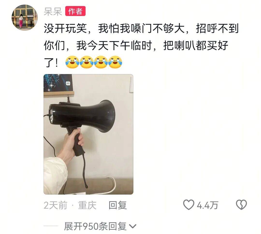 有网友戏称呆呆为“2026年‘闯祸’第一人”,而呆呆本人对视频引发的热度也非常意外,称为招呼远道而来的网友们,自己已提前备好喇叭。